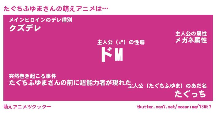 | 男性向けラノベタイトル風あだ名 | 『たぐちふゆまの憂鬱』 |