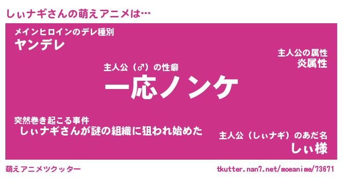 | 意味不明あだ名 | 『ペロリンしぃナギ』『永久保存しぃナギ』 |