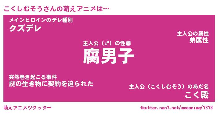 | 女子向けラノベタイトル風あだ名 | 『こくしむそう姫と円卓の騎士』 |