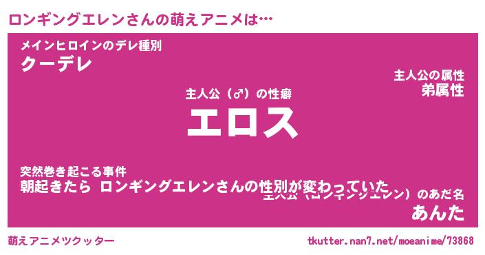 | 男性向けラノベタイトル風あだ名 | 『ロンギングエレンアートオンライン』 |