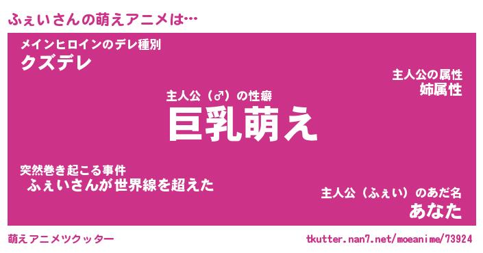 | 男性向けラノベタイトル風あだ名 | 『ふぇいの憂鬱』 |