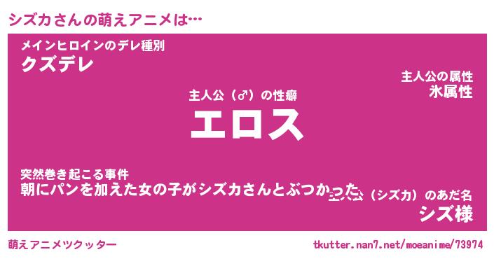 | ファンタジー風あだ名 | 『シズフェル』『エターナルシズカー』 |