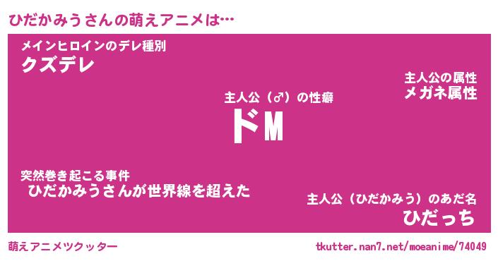 | 男性向けラノベタイトル風あだ名 | 『ひだかみうの憂鬱』 |