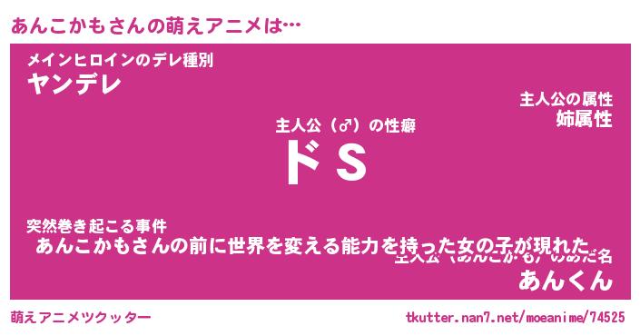 | 男性向けラノベタイトル風あだ名 | 『あんこかもの憂鬱』 |