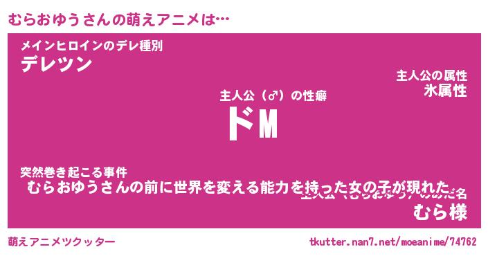| 女子向けラノベタイトル風あだ名 | 『(仮)むらおゆうのやんごとなき事情』 |