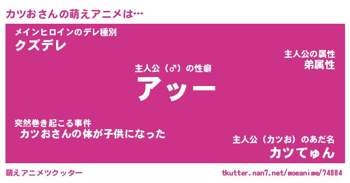| 男性向けラノベタイトル風あだ名 | 『カツオアートオンライン』 |