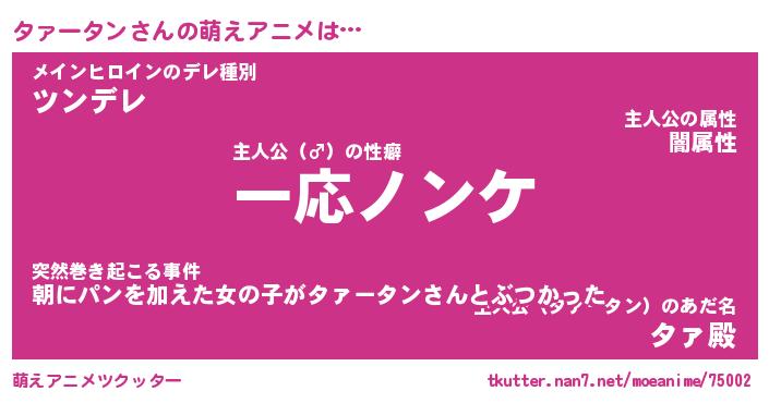 | 男性向けラノベタイトル風あだ名 | 『タァータンアートオンライン』 |