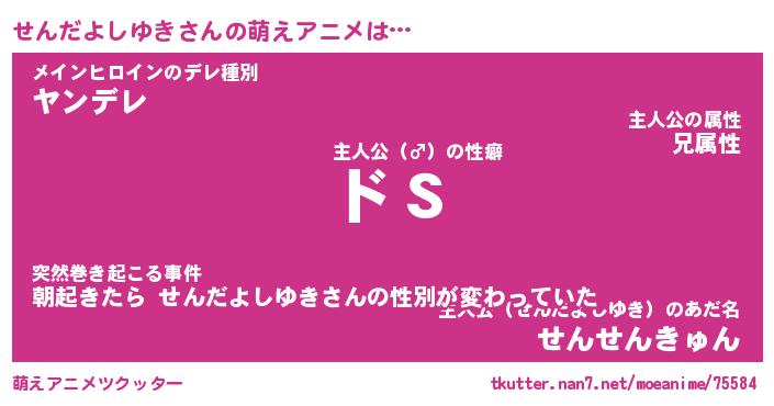 | 女子向けラノベタイトル風あだ名 | 『(仮)せんだよしゆきのやんごとなき事情』 |