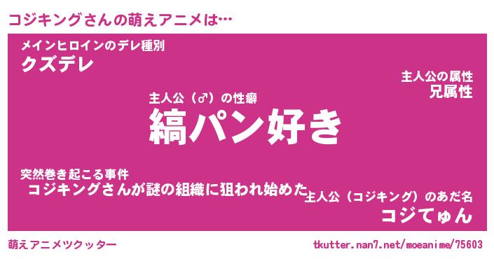 | 男性向けラノベタイトル風あだ名 | 『コジキングの憂鬱』 |