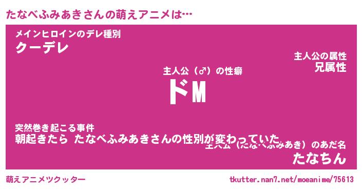 | 女子向けラノベタイトル風あだ名 | 『(仮)たなべふみあきのやんごとなき事情』 |