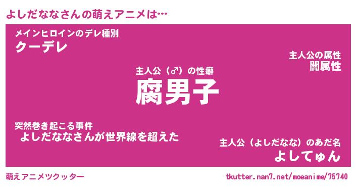 | 肩書あだ名 | 『よしだなな御曹司』『よしだなな塾長』 |