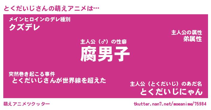 | 男性向けラノベタイトル風あだ名 | 『トクダイジアートオンライン』 |