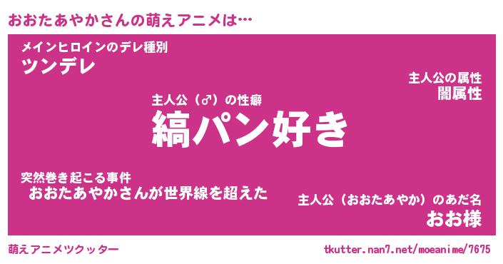 | 男性向けラノベタイトル風あだ名 | 『おおたあやかの憂鬱』 |