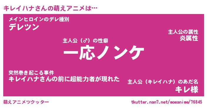 | ヒーロー風カッコイイあだ名 | 『スーパーキレイハナ』『幻影騎士キレ』 |