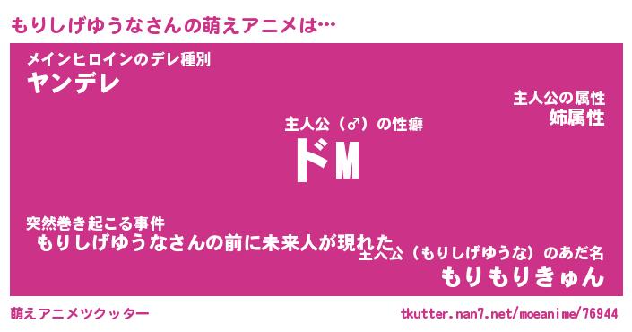 | 女子向けラノベタイトル風あだ名 | 『(仮)もりしげゆうなのやんごとなき事情』 |