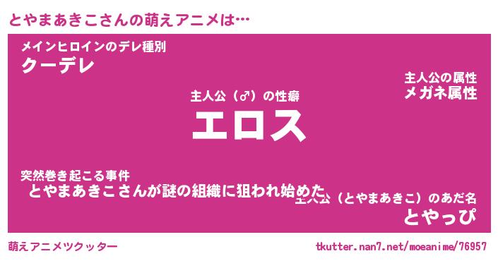 | 女子向けラノベタイトル風あだ名 | 『誰かこのとやまあきこを説明してください! ~契約から始まるウェディング~』 |
