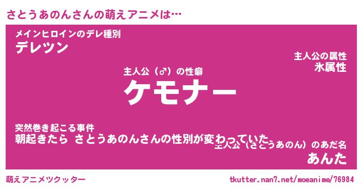 | 女子向けラノベタイトル風あだ名 | 『誰かこのさとうあのんを説明してください! ~契約から始まるウェディング~』 |