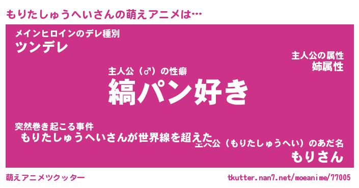 | 女子向けラノベタイトル風あだ名 | 『(仮)もりたしゅうへいのやんごとなき事情』 |