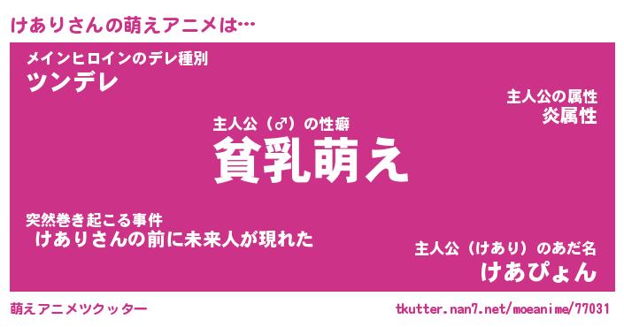 | 男性向けラノベタイトル風あだ名 | 『けありの憂鬱』 |