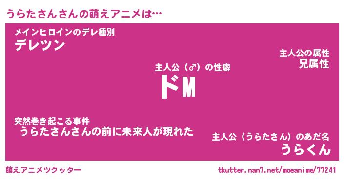 | 女子向けラノベタイトル風あだ名 | 『(仮)うらたさんのやんごとなき事情』 |