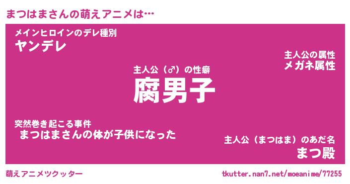 | 2回繰り返すあだ名 | 『まつまつ』『ままつつ』『ぬめぬめ』 |