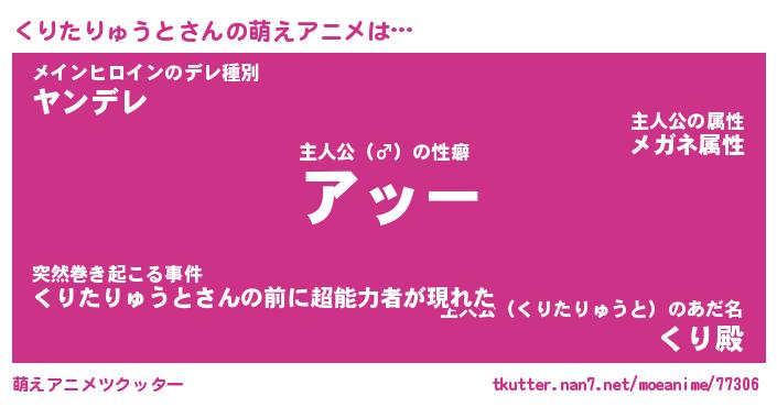 | 男性向けラノベタイトル風あだ名 | 『クリタリュウトアートオンライン』 |