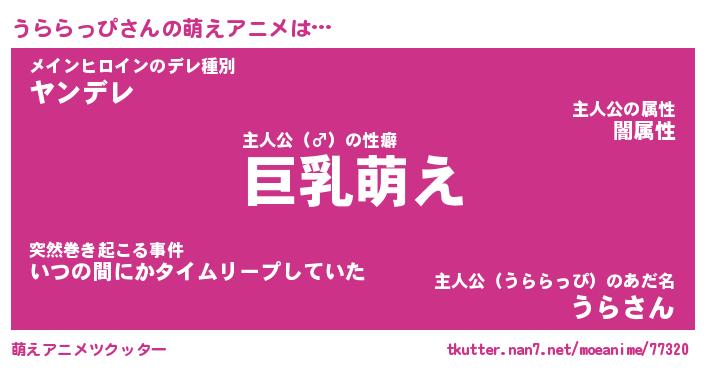 | 男性向けラノベタイトル風あだ名 | 『うららっぴの憂鬱』 |