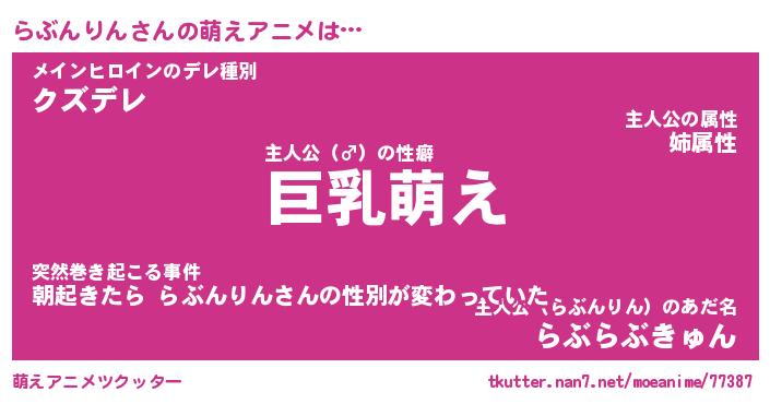 | 男性向けラノベタイトル風あだ名 | 『らぶんりんの憂鬱』 |