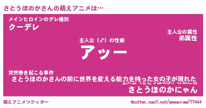 | 男性向けラノベタイトル風あだ名 | 『サトウホノカアートオンライン』 |