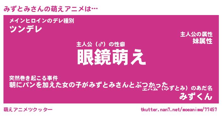 | 男性向けラノベタイトル風あだ名 | 『みずとみの憂鬱』 |