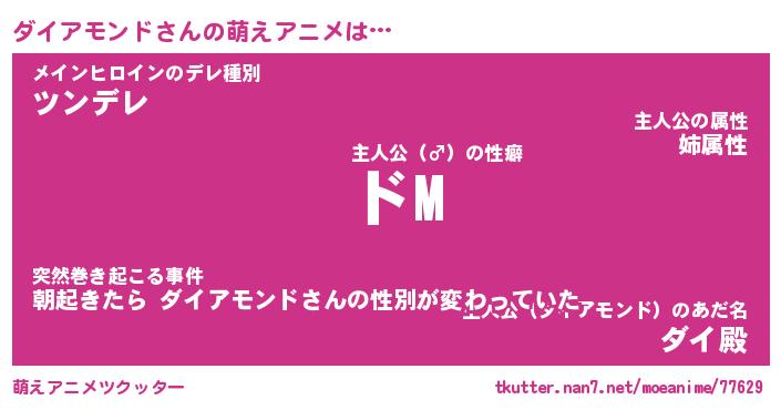 | 女子向けラノベタイトル風あだ名 | 『(仮)ダイアモンドのやんごとなき事情』 |