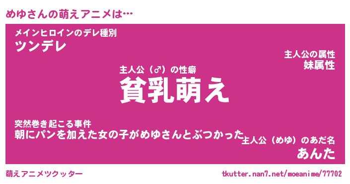 | 男性向けラノベタイトル風あだ名 | 『めゆの憂鬱』『ノーゲーム・ノーメユ』 |