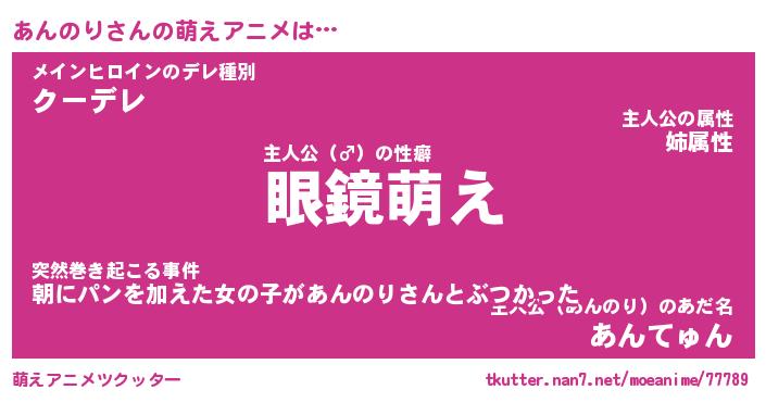 | 男性向けラノベタイトル風あだ名 | 『あんのりの憂鬱』 |