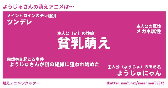 | 女子向けラノベタイトル風あだ名 | 『(仮)ようじゅのやんごとなき事情』 |
