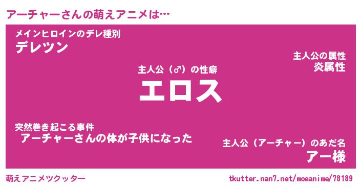 | 男性向けラノベタイトル風あだ名 | 『アーチャーアートオンライン』 |