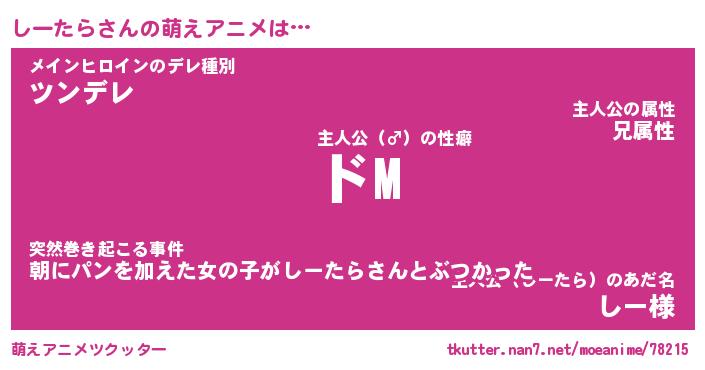 | 男性向けラノベタイトル風あだ名 | 『しーたらの憂鬱』 |