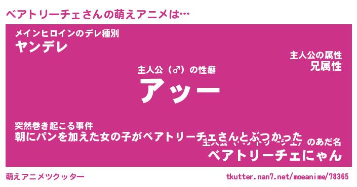 | 男性向けラノベタイトル風あだ名 | 『ベアトリーチェアートオンライン』 |