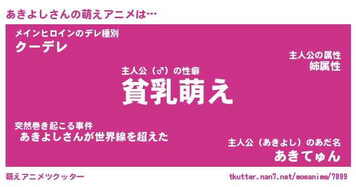 | 男性向けラノベタイトル風あだ名 | 『あきよしの憂鬱』 |