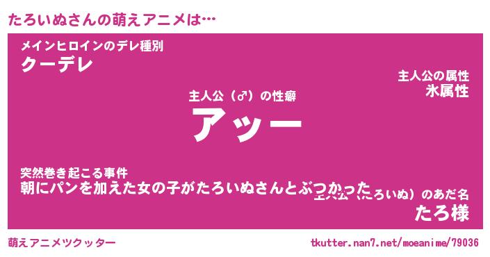 | 男性向けラノベタイトル風あだ名 | 『タロイヌアートオンライン』 |