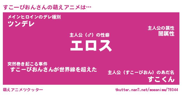 | 女子向けラノベタイトル風あだ名 | 『誰かこのすこーぴおんを説明してください! ~契約から始まるウェディング~』 |