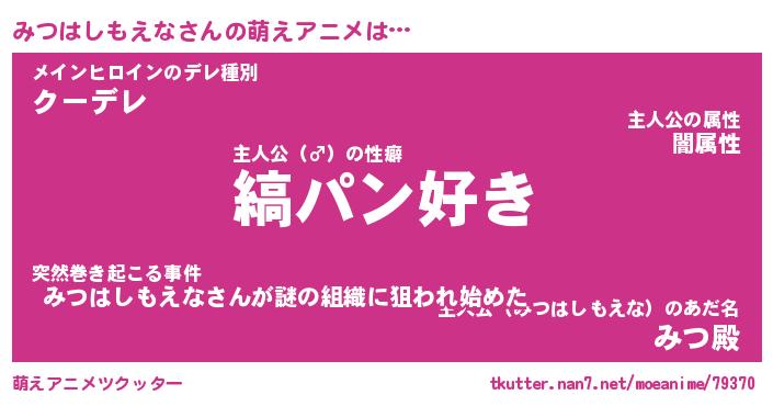 | 男性向けラノベタイトル風あだ名 | 『みつはしもえなの憂鬱』 |