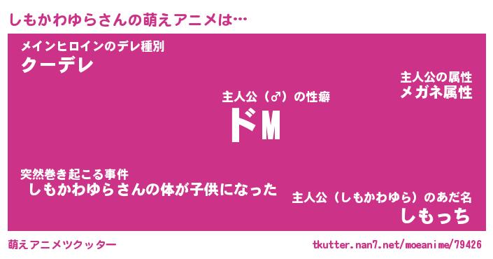 | 男性向けラノベタイトル風あだ名 | 『しもかわゆらの憂鬱』 |
