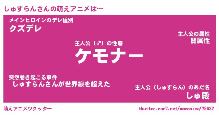 | 男性向けラノベタイトル風あだ名 | 『シュスランアートオンライン』 |