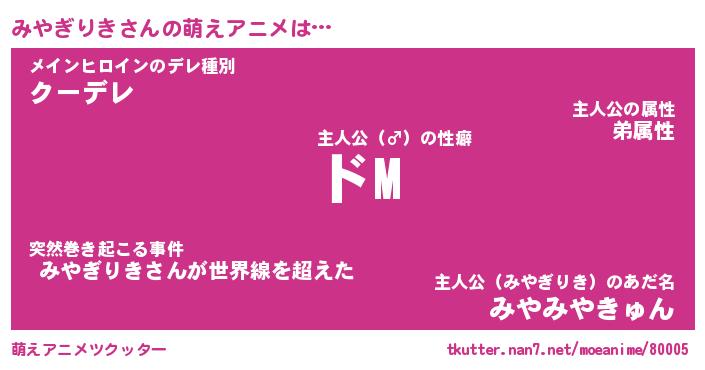 | ファンタジー風あだ名 | 『ミヤフェル』『エターナルミヤギリキー』 |
