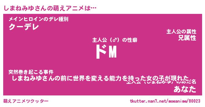 | 男性向けラノベタイトル風あだ名 | 『しまねみゆの憂鬱』 |
