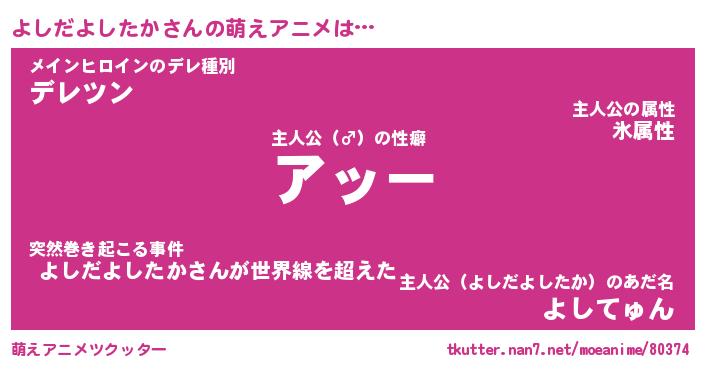 | 女子向けラノベタイトル風あだ名 | 『誰かこのよしだよしたかを説明してください! ~契約から始まるウェディング~』 |