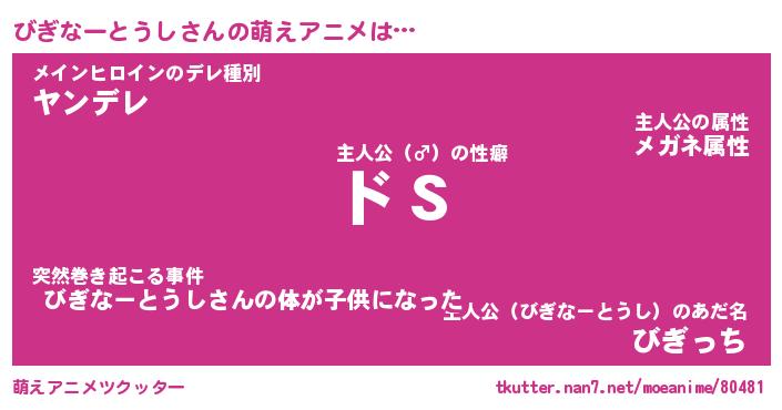 | ヘコむあだ名 | 『びぎもー』『つくし』『びぎお』 |