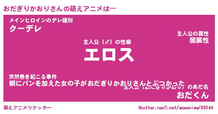 | 女子向けラノベタイトル風あだ名 | 『誰かこのおだぎりかおりを説明してください! ~契約から始まるウェディング~』 |