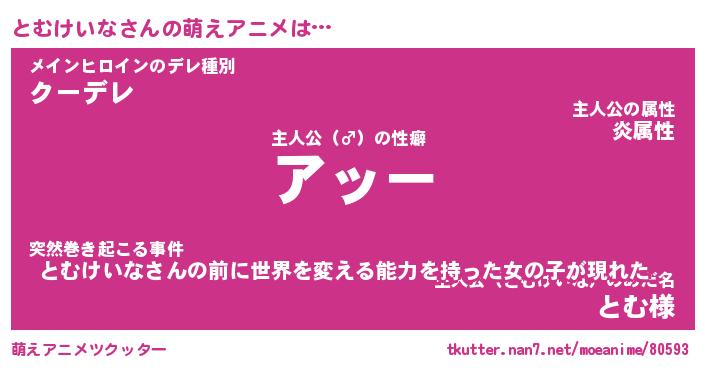 | ファンタジー風あだ名 | 『トムフェル』『エターナルトムケイナー』 |