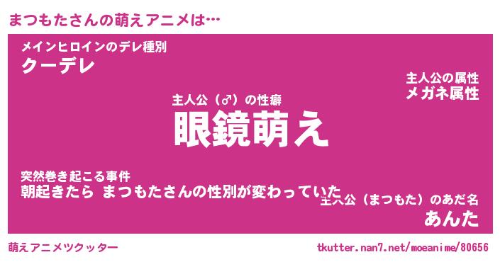 | 男性向けラノベタイトル風あだ名 | 『まつもたの憂鬱』 |